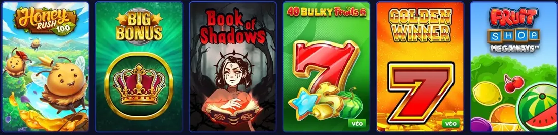 Η κύρια προσοχή δίνεται στα φρουτάκια, καθώς σε αυτήν την ενότητα συγκεντρώνεται ο μεγαλύτερος αριθμός παιχνιδιών. Παρουσιάζονται κλασικές εκδόσεις με 3 τροχούς, καθώς και καινοτόμα βίντεο φρουτάκια. Τα τελευταία προσφέρουν προηγμένα γραφικά με διάφορους μηχανισμούς και μπόνους. Εδώ είναι μερικά από τα πιο δημοφιλή παιχνίδια στην Ελλάδα: